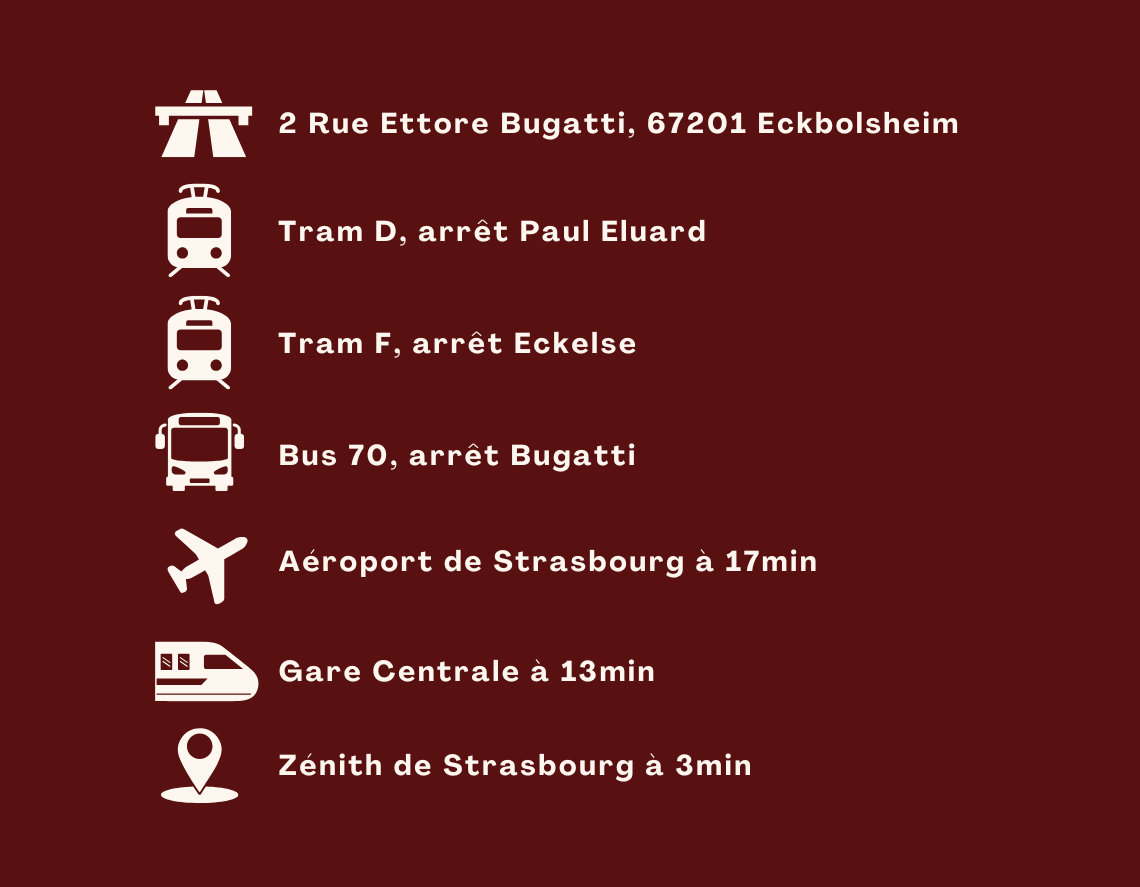 À seulement 3 minutes du Zénith de Strasbourg, notre salle bénéficie d’un emplacement stratégique.